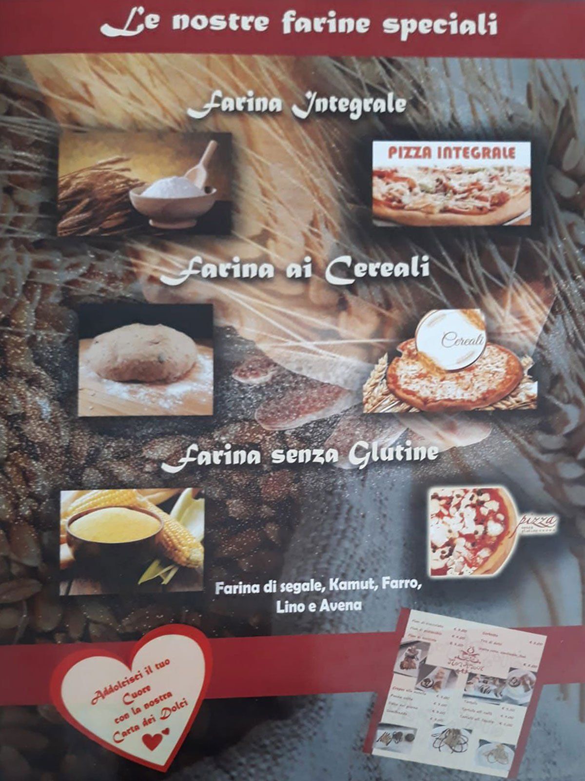 Tra le tante specialità che rendono inimitabile il servizio offerto vi sono i menù pizza, oltre al menù alla carta comprensivo di più di 50 differenti proposte di pizze.